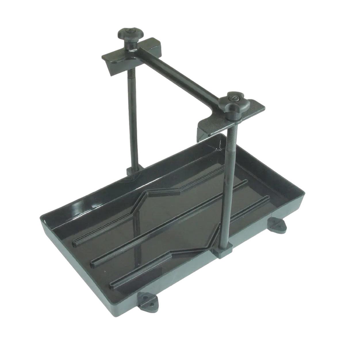 Heavy duty moulded high density polyethylene tray, top bracket and support bolts. The tray provides protection to the hull and contains minor acid spills. Maximum overall height is 270mm. Suits battery heights 170-225mm. 6mm roundhead mount screws.