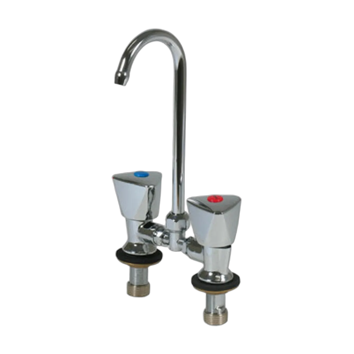 - Italian made chrome plated brass mini single tap, double tap and double shower mixer unit taps have chrome ABS handles with red and blue indicators.