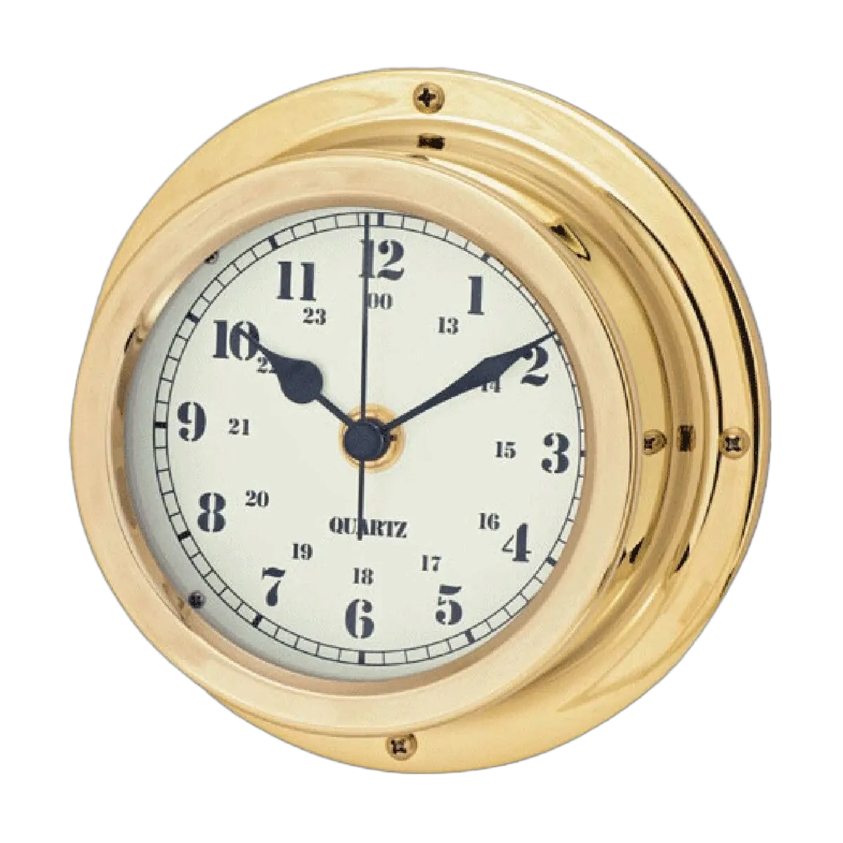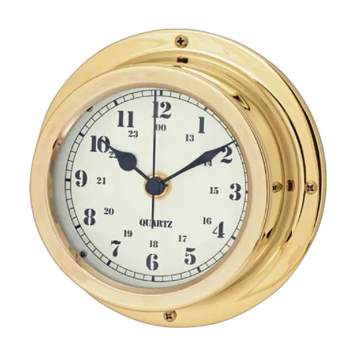 Quality range of clocks, barometers and tide clocks with enclosed face and high quality, precision movements. All instruments feature bevelled glass lens, clear contrasting lettering and are easily removed from their mount for adjustment. Advanced PVD surface treatment with Zirconium plating ensures maximum surface life and lustre while the ‘O’ ring seal enables outdoor mounting. Supplied with mounting hardware and one AA battery for quartz clocks.