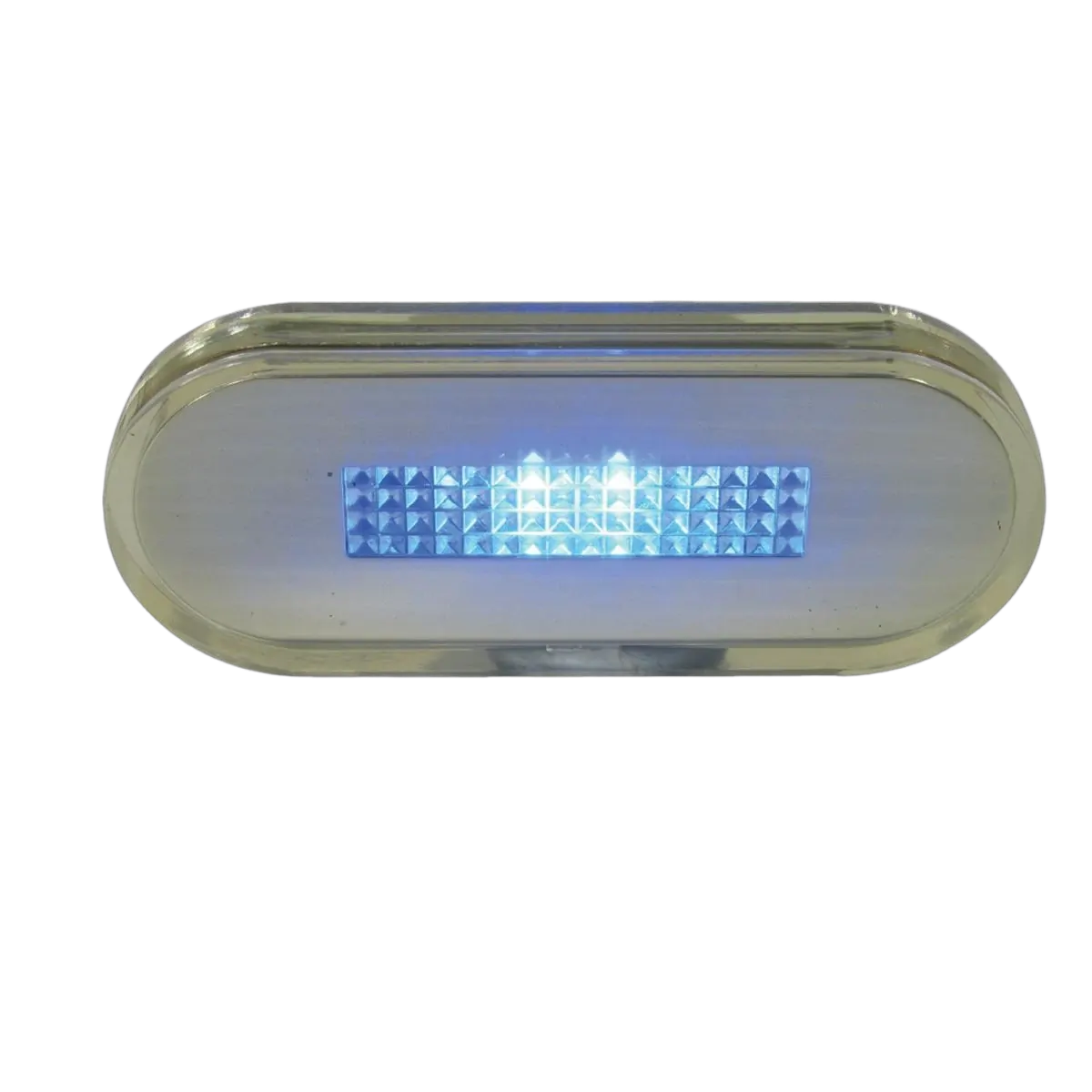 Only 0.35 watts of power consumption with intensity of an 8 watt incandescent bulb. Polycarbonate housing with stainless steel dress plate. Prismed lens. No visible fastenings. Weatherproof but not submersible. Ideal for cockpits, stairs, storage compartments and similar. Available in three LED colours. 12 volt.