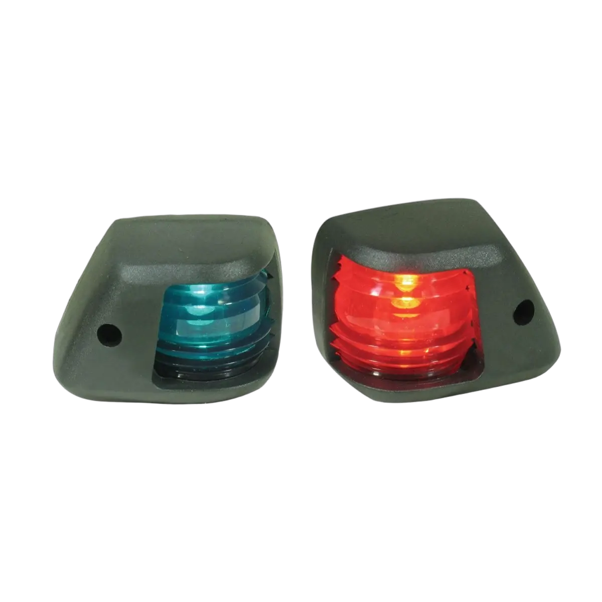 Side mount, port and starboard navigation lights. Polypropylene housing with acrylic lens. Supplied with EVA self adhesive base gasket. Internal lens and gasket design forms an air pocket to prevent water entry, but allow humidity to evaporate out. 12 volt, sold as a pair.