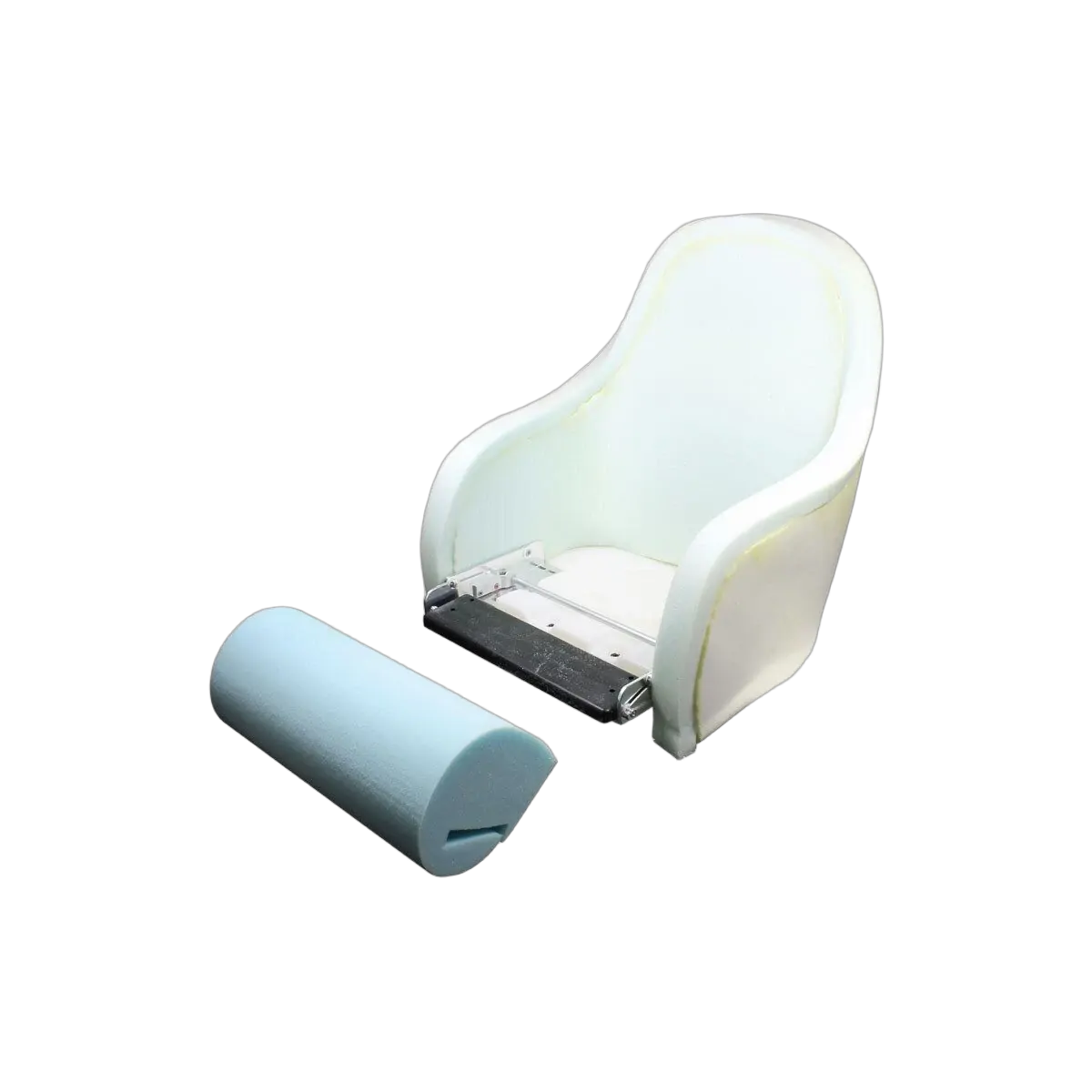 Innovative fully upholstered seat, based on a rotationally moulded polyethylene shell, with marine grade heavy duty carbon look vinyl over plush foam padding. The front thigh support is hinged, allowing it to be flipped up, offering the helmsperson additional seating height or lean against standing support for greater visibility, comfort and safety. For additional storage a pouch with elasticised top is incorporated in the seat back. The shell and flip up mechanism may also be purchased separately (181218) for those wanting to custom upholster.