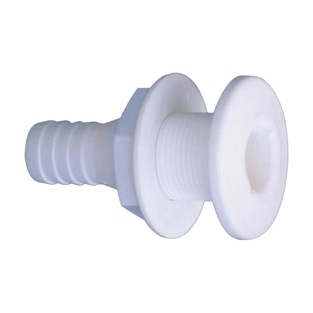 White moulded plastic through hull fittings. Suitable for most above waterline outlets.