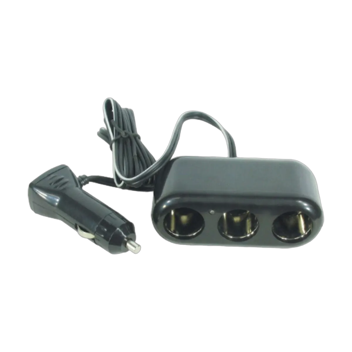 Two core cable, 12 volt cigarette lighter style plug one end, triple lighter style socket the other. LED power indicator at socket end. Plug has an integral fuse to protect overload. Supplied with double sided tape to fix triple socket.