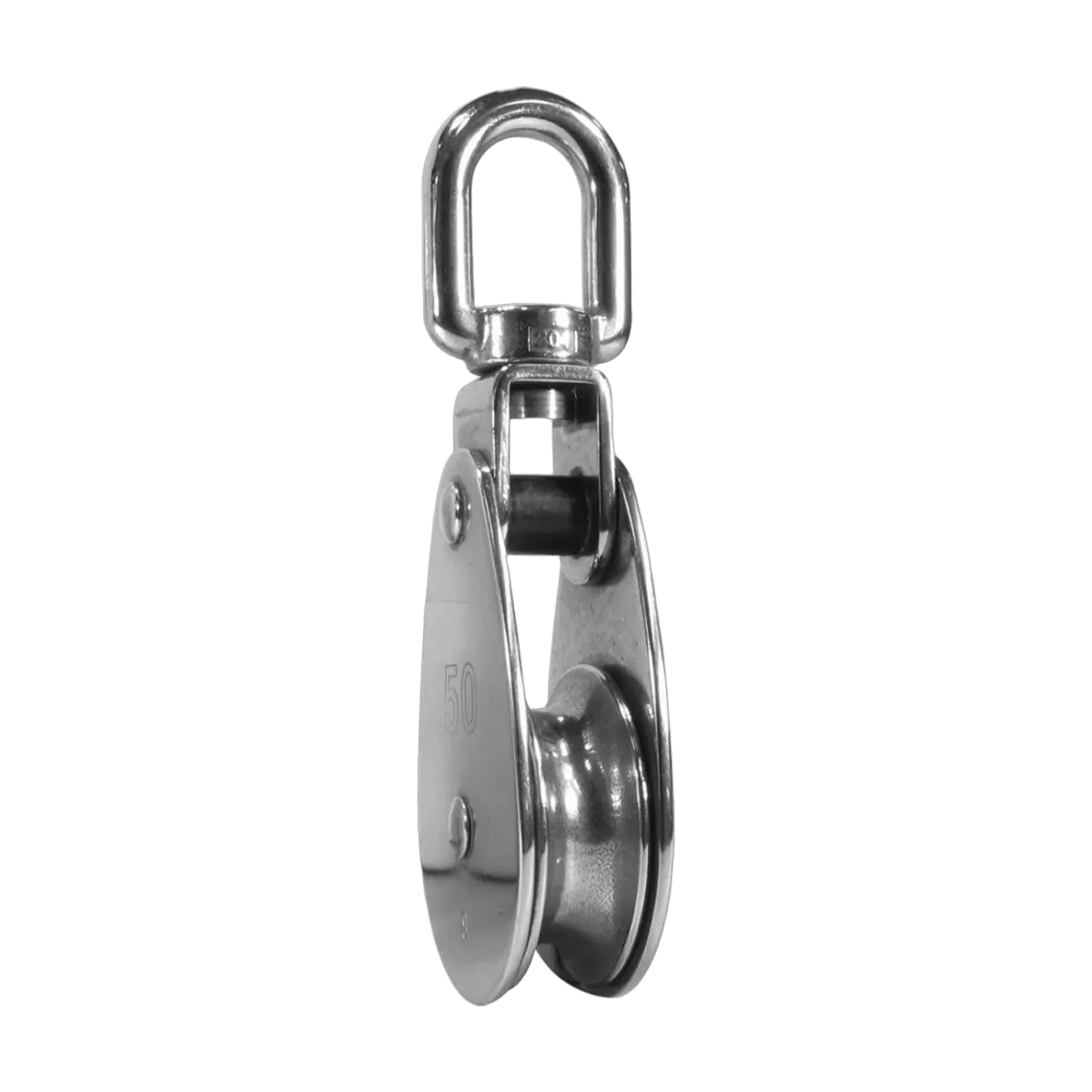 Stainless steel cheek blocks with choice of single, brass bushed stainless steel or nylon sheave. Swivelling bale head. Heavy construction for commercial applications.