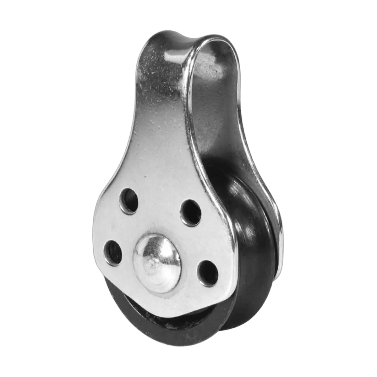 304 grade stainless steel cheeks with single black nylon sheave.