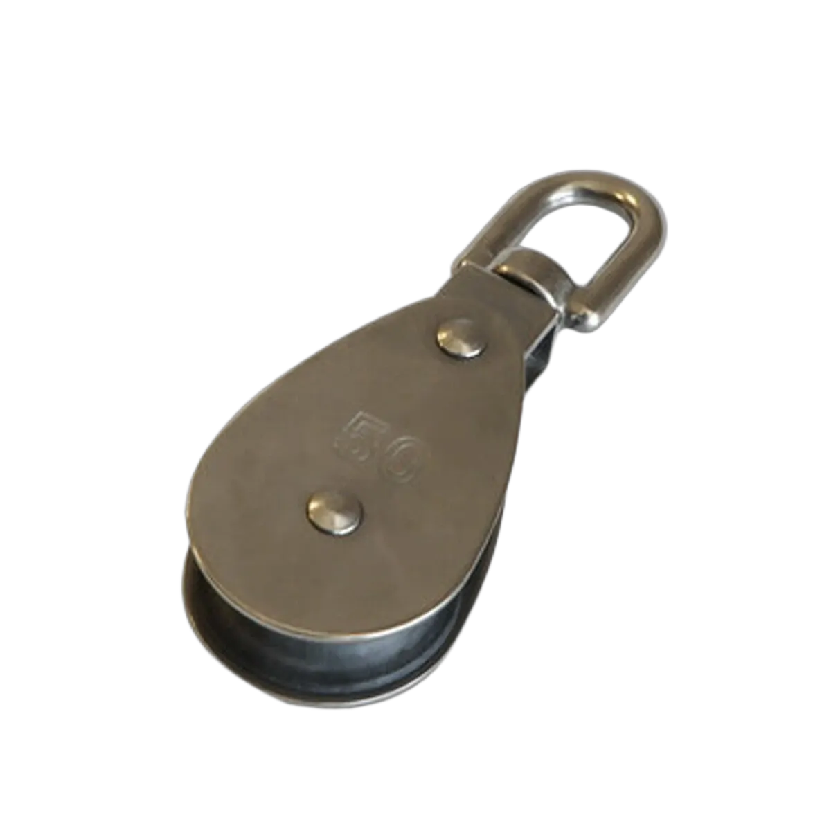 Single Blocks - Stainless Steel Block Single Swiv Eye 14X50mm Nyl Shv 166514 304 grade stainless steel cheek blocks with choice of single, brass bushed stainless steel or nylon sheave. Swivelling bale head. Heavy construction for commercial applications. [table id=715 MWL - Maximum Working Load