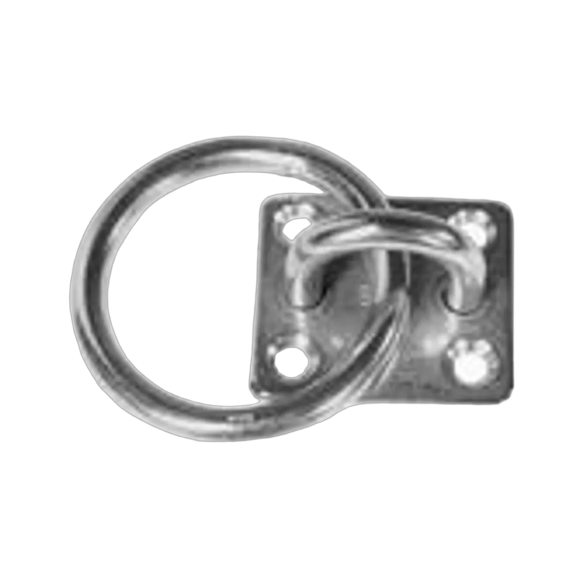 Polished 304 grade stainless steel pad eye with rectangular pressed plate, rolled and welded saddle and ring.