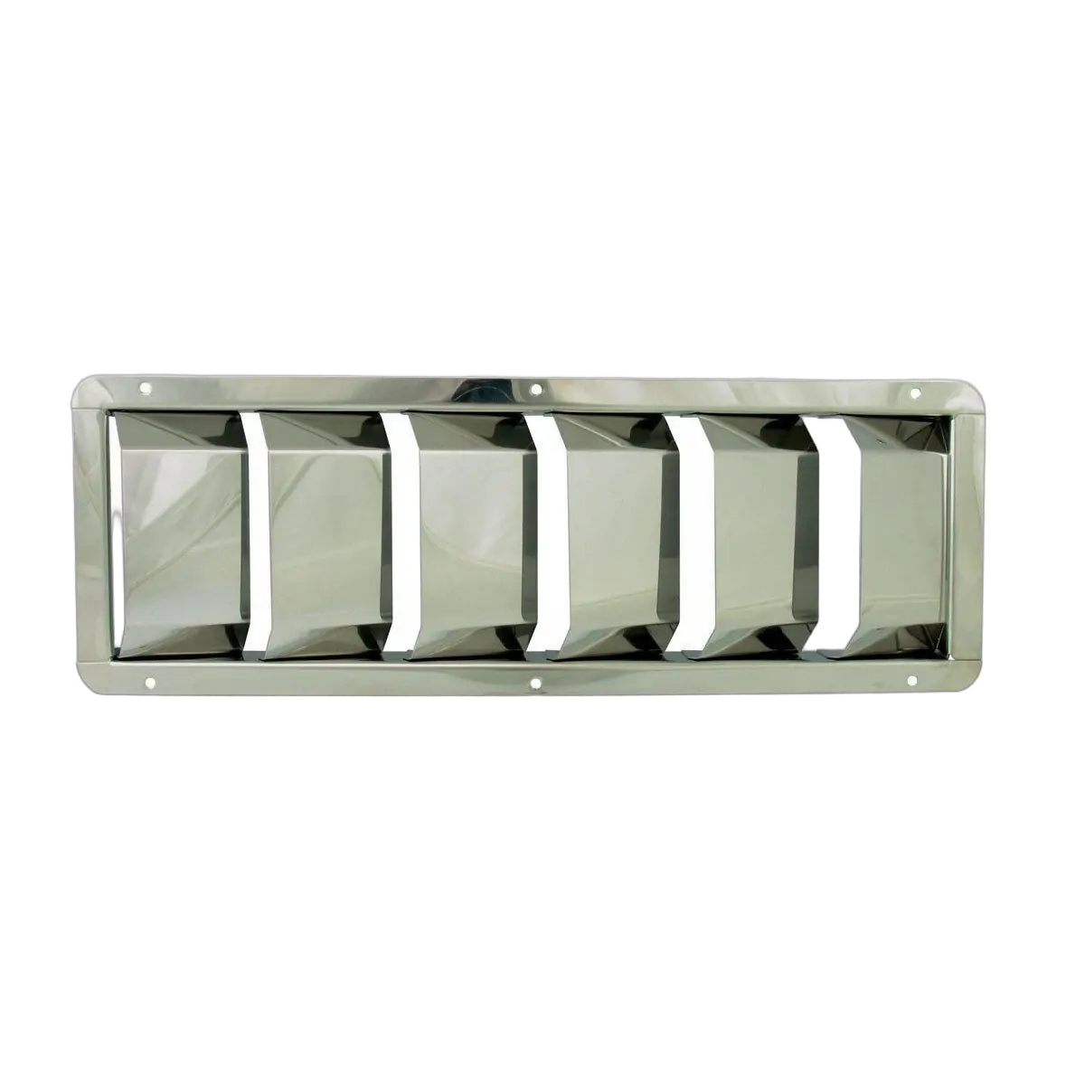 Pressed stainless steel construction with mounting flange. Raised flat top louvres. Ideal for engine compartments.