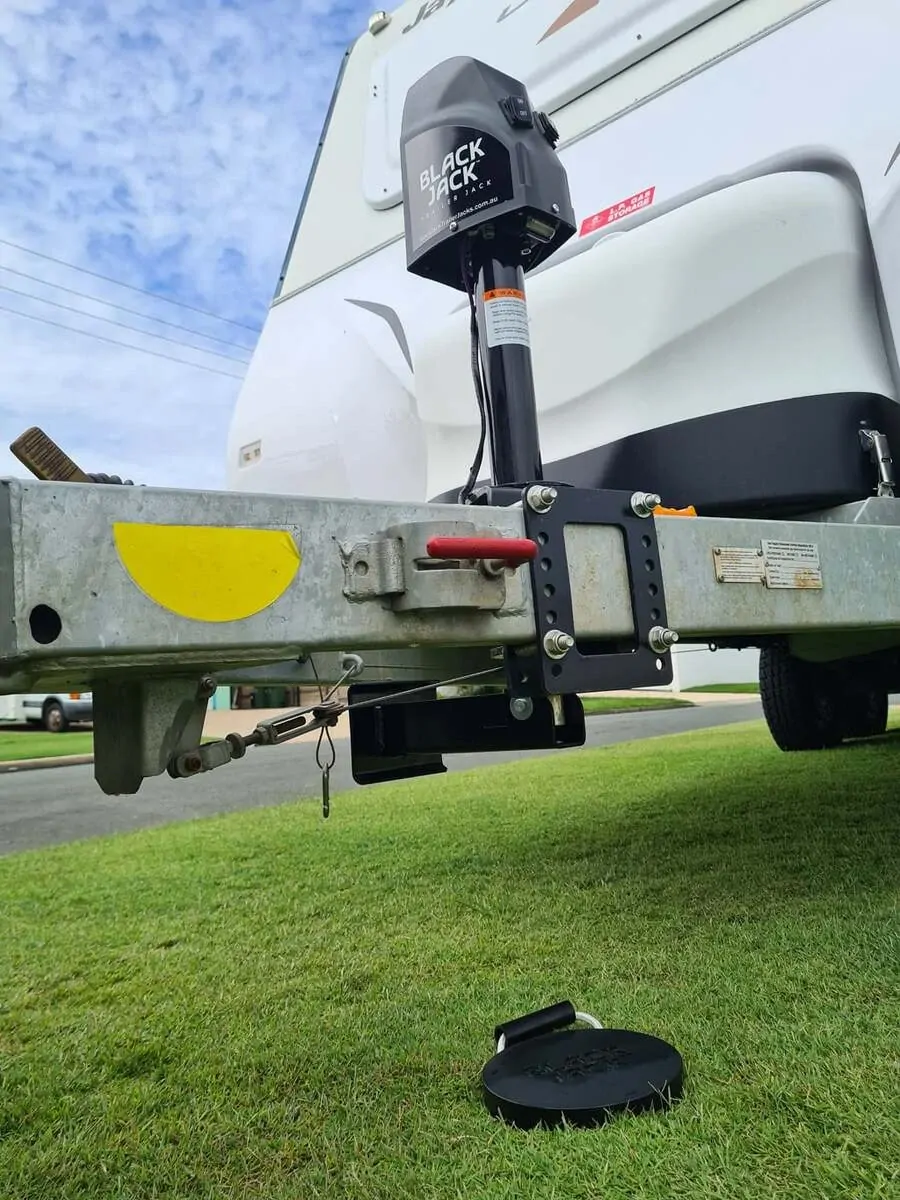 Black Jack Trailer Jack Folding Foot is the fastest electric jack solution on the market for hitching or unhitching your trailer or caravan. It requires no bending or adjusting the Extender Foot when deploying or retracting the jack. Simply push a button and you can unhitch or hitch up within 60 seconds. The Black Jack Folding Foot is revolutionising the time and strenuous efforts spent using traditional trailer stands/jockey wheels.