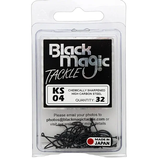 • Heavy gauge high carbon steel Wire ensures that these hooks are not crushed or broken easily. The KS range has caught everything from baitfish to marlin and has been used to win numerous tournaments and club records.