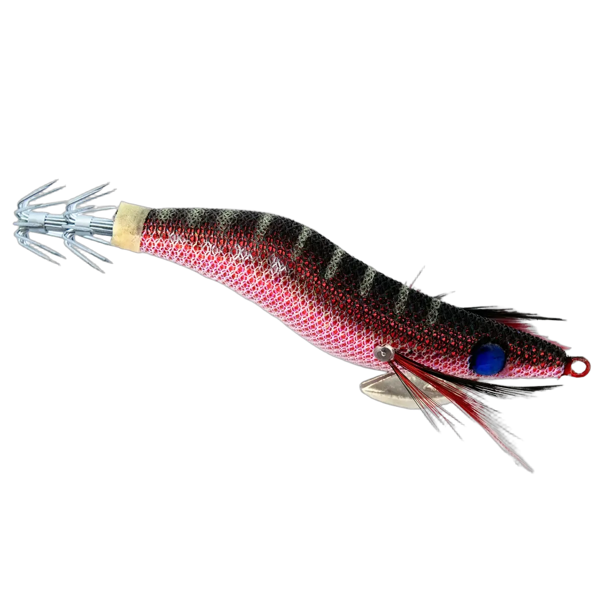 • Sapphire blue eyes, and red/black or natural wings are designed to entice those hungry squid