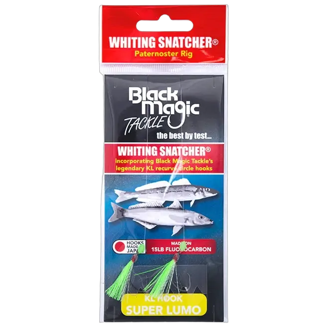 • Utilising Black Magic’s legendary Japanese KL recurve/circle hooks and quality Fluorocarbon trace, these rigs give you the edge when targeting whiting or small reef fish