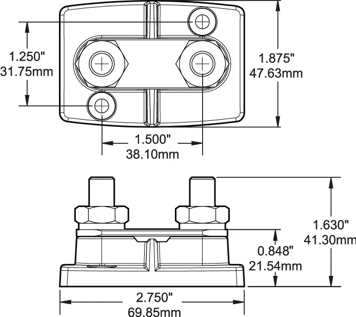 • Provides compact high-ampere busing with 3/8" terminal studs