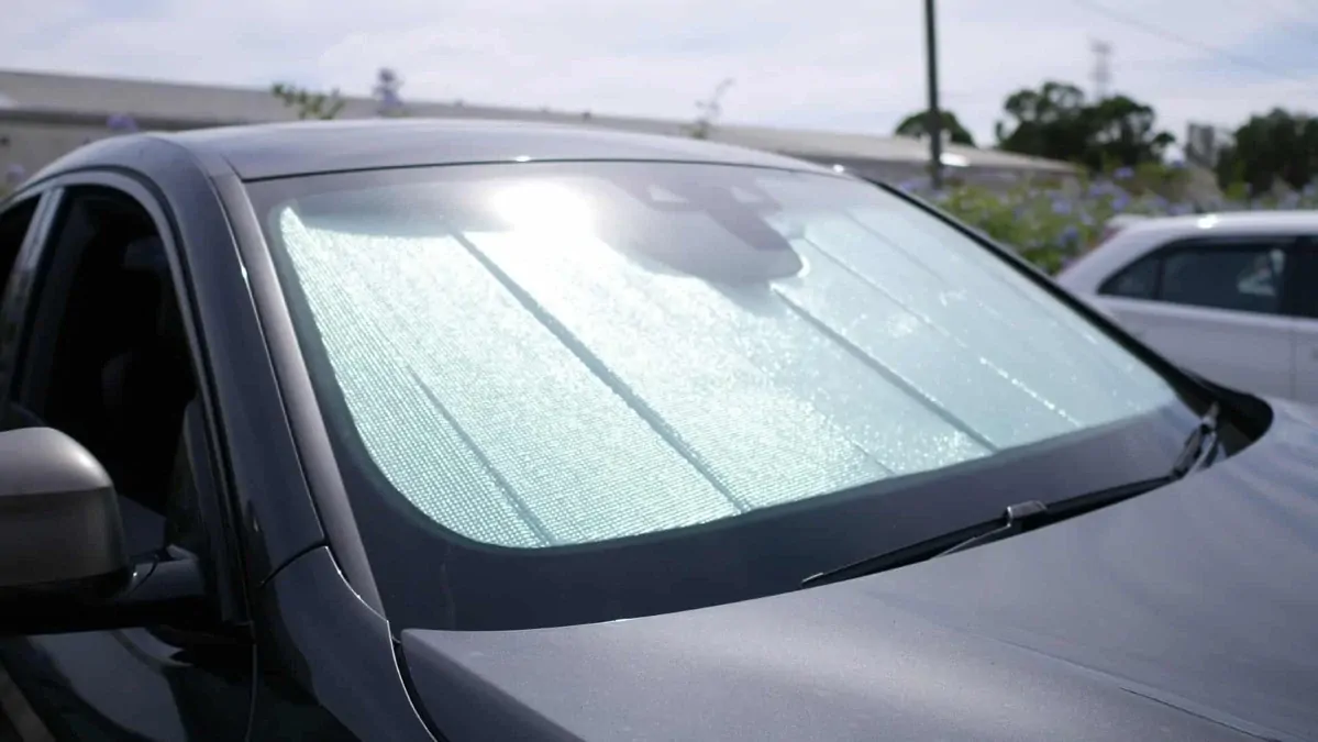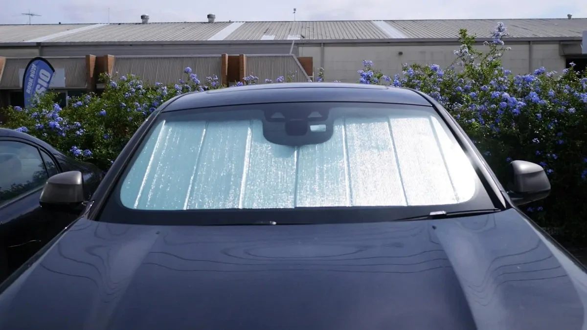 Note: Our custom sun shades block out a significant amount of light and UV rays that enter from the front windscreen, however due to the angle of the front windscreen and additional sensors or different mirror shapes/sizes available for different models, there may be slight gaps around your rear-view mirror or sides to allow the sun shade to fit.