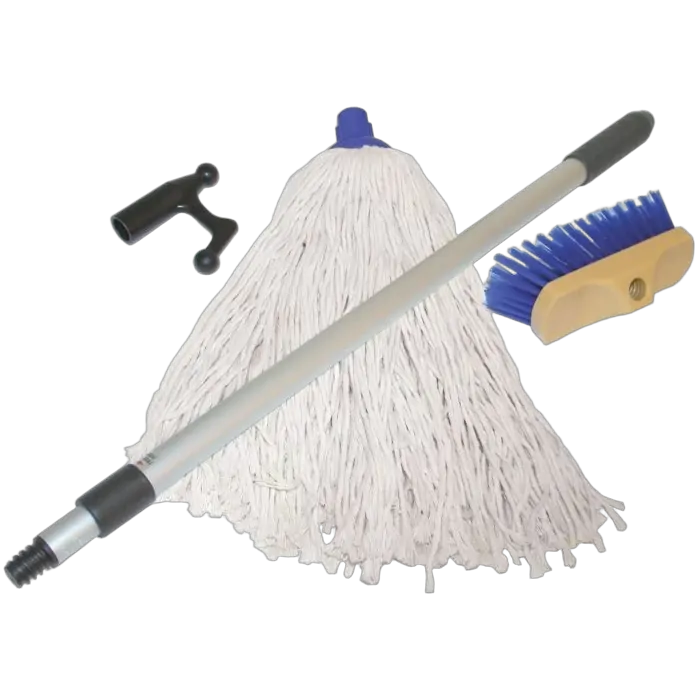 A practical kit to keep on board for cleaning the boat and for use as a boat hook.