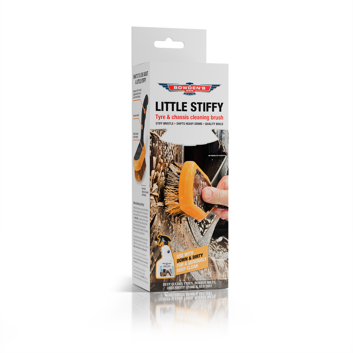 Makes deep cleaning tyres, rubber mats, underbody grime and red dirt faster and easier.