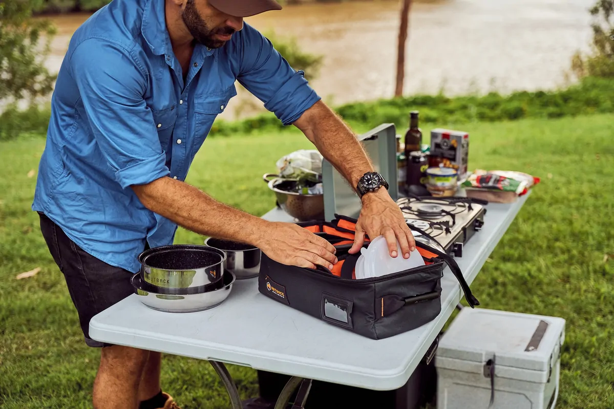 The Outback Explorer Clear Top Canvas bag is a must-have for any camping setup! With a clear top cover for easy visibility, canvas exterior and PVC lining, you'll keep your items protected longer, save less time searching for items and more time enjoying your trip!