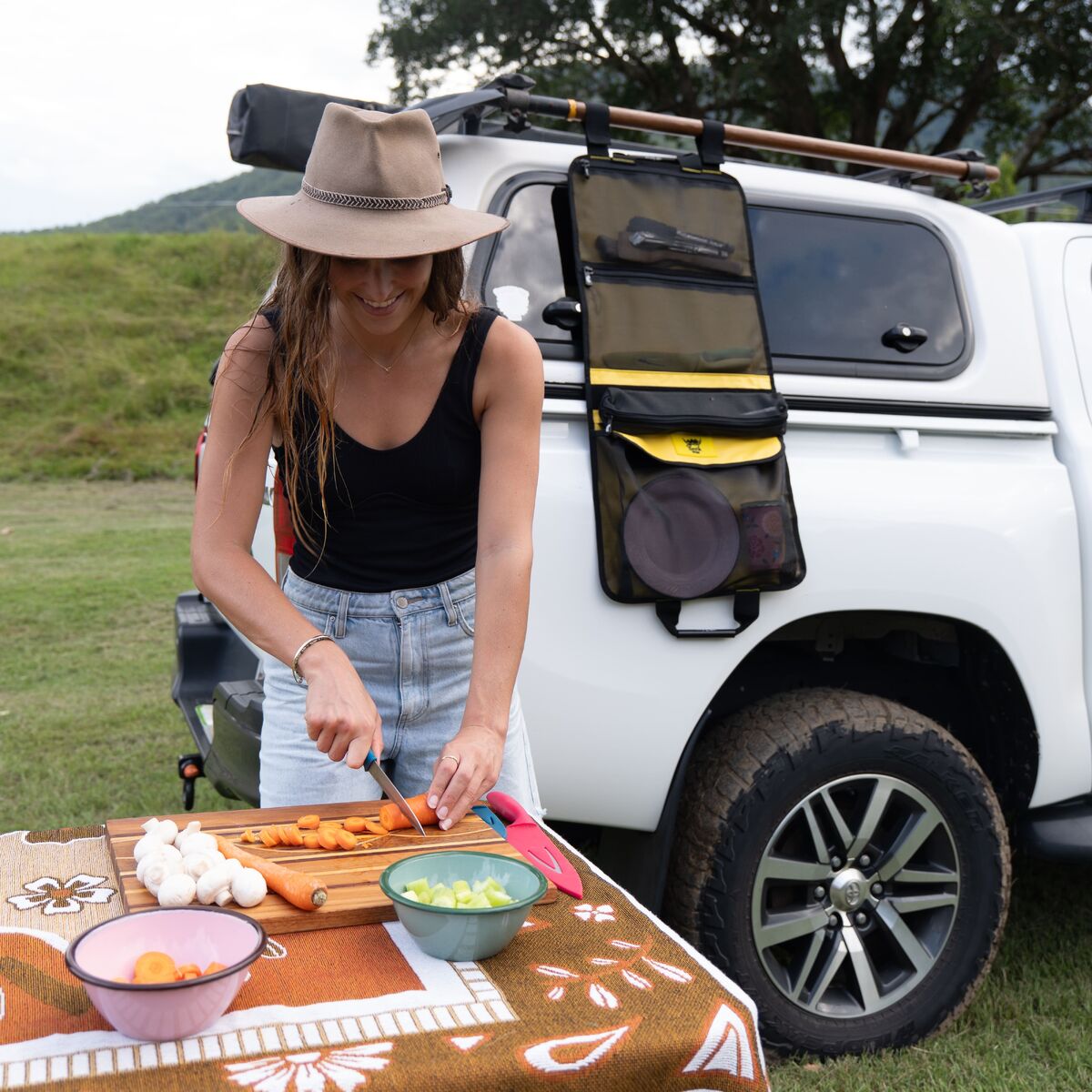 The Buck Wild Hanging Kitchen is the ultimate solution for outdoor enthusiasts seeking a convenient way to organize their kitchen utensils while camping. Simply hang it on the side of your awning for easy access during cooking sessions, then fold it up and stow it away when you're on the move.