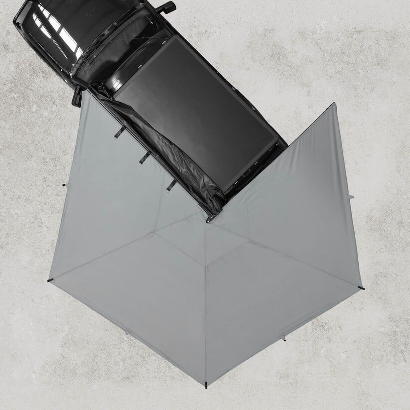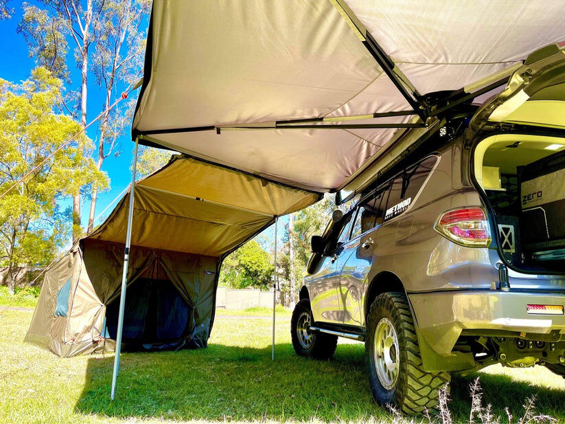The 270 Awning is designed with a robust aluminium ENDO frame that delivers exceptional stability and strength, making it a fully freestanding solution. Crafted with UV50+ waterproof 900d Oxford canvas for right hand side awnings and UV50+ waterproof NEW Hexatough canvas for left hand side awnings, this awning is built to withstand harsh Australian conditions while providing extensive shade and protection.