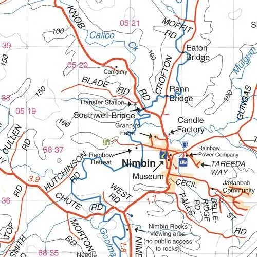 A map of Byron Bay to Mt Warning to Ballina, including Lennox Head, Murwillumbah, Nimbin, Lismore, Brunswick Heads, Mullumbimby, Bangalow, Pottsville, Wollumbin National Park, Nightcap National Park, and Jerusalem National Park.