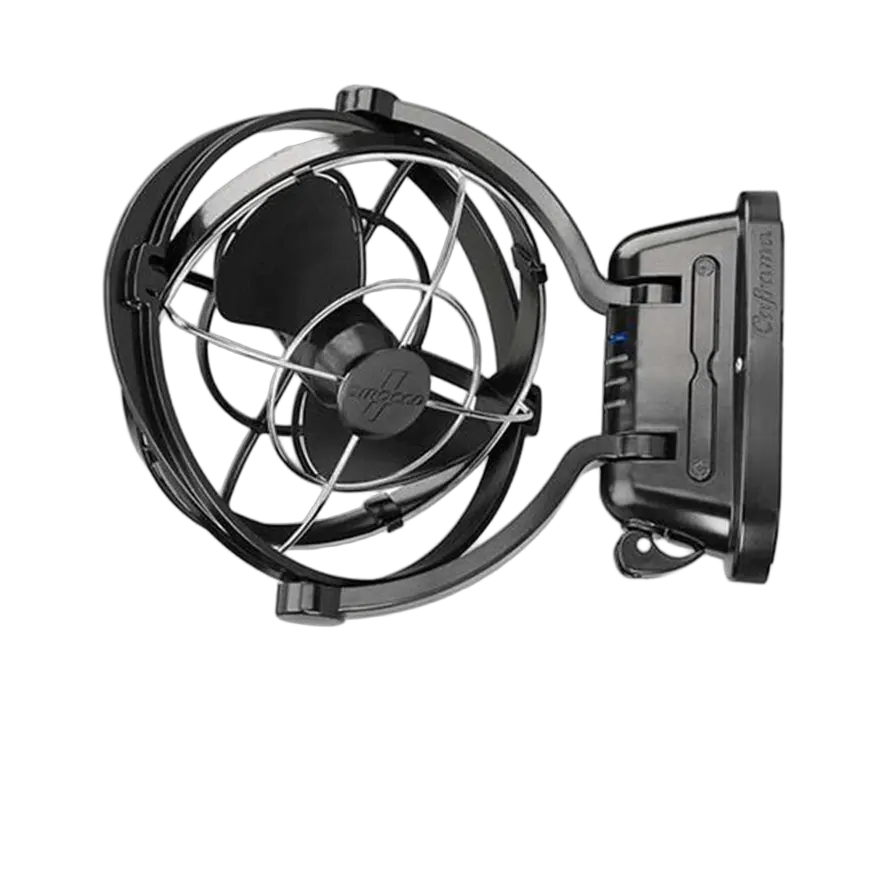 The new Caframo Sirocco II fan features a unique gimbaled design that allows 360° airflow with versatile 12/24 Volt auto-sensing capability. It’s all the rage with #vanlifers and motorhome owners because of its low voltage power draw and strong breeze. Living in a vehicle, as some of us already know can get stuffy, making it hard to get comfortable. Feeling nervous about cutting holes in your roof to install a vent? Then the Sirocco fan II is for you. We know it’s all too common to get stuck inside in the rain for a few days, which makes cracking a window impossible. Escape the humidity or use it to disperse smoke from cooking! With the improved control layout, increased timer settings and quieter operation the Caframo Sirocco II fan is the perfect choice for caravanning in comfort.