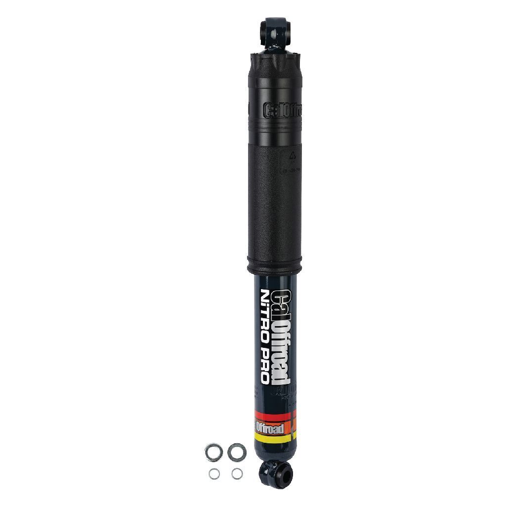 CalOffroad Nitro Pro offers a range of features designed to provide optimal performance and durability for various vehicle types and loads. With its twin tube construction, 18mm hard chromed piston rod, and larger internal bore, it delivers lower shock temperatures and increased strength. The large 54mm body, on most models, allows for better oil capacity and heat dissipation, while the gas pressurisation reduces foaming, fade and noise. The suspension also boasts all-weather Fuchs oil for extreme temperature operations, a slip ring rod guide for precise damping control, and a 2-part epoxy coating for superior resistance to chips and corrosion.