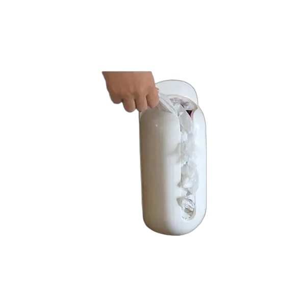 This plastic bag holder/dispenser stores grocery bags efficiently.