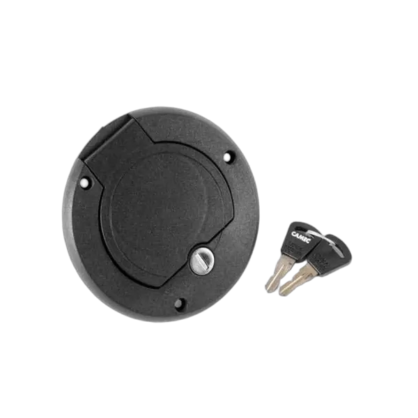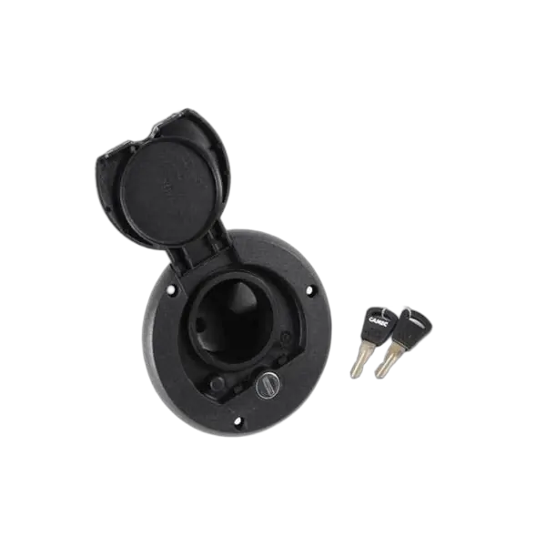 Lockable Water Filler Right Hand Hinge - Black. Will fit 85mm diameter hole from previous CAMEC / VECAM water filler.