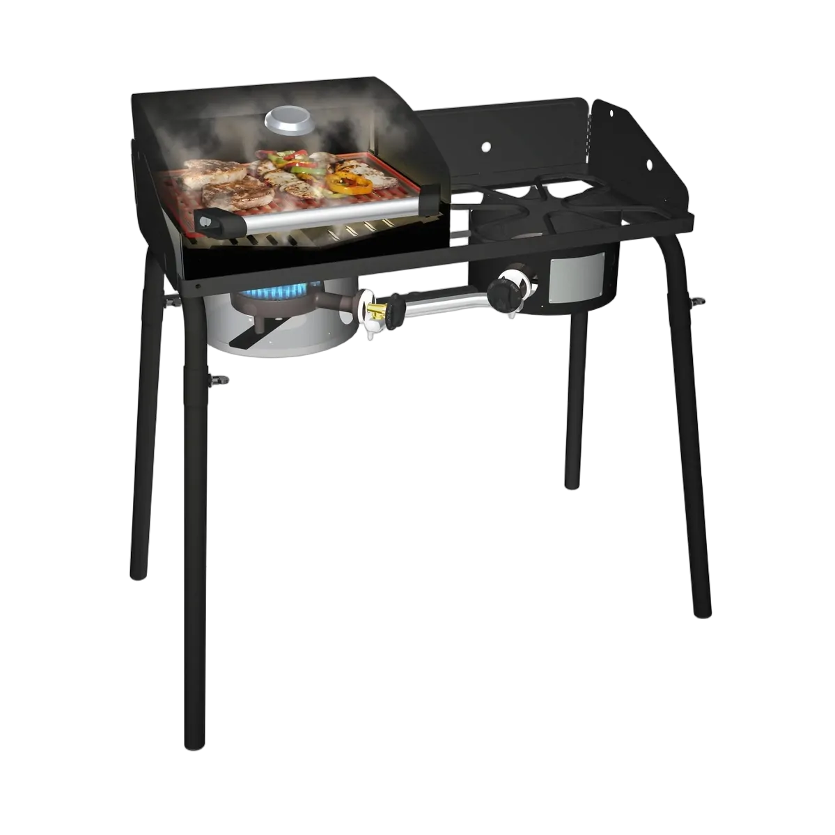 From delicious grilled salmon to your favourite kabobs, grilled food always makes life a little better. This Professional Grill Box gives you the ability to grill your favourite foods to perfection, every time. It has been designed with Camp Chef’s patented heat diffuser system that minimizes hot spots and converts flames into infrared heat.