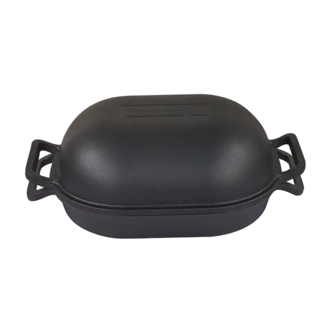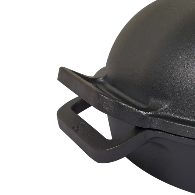 The Combo Camp Oven is a versatile cooking companion, made with pre-seasoned cast iron for durability and exceptional heat distribution. With its reversible design, this camp oven offers various cooking options over a fire or in an oven. The deep dish dome is perfect for cooking casseroles or curries, while the shallow base allows for roasting or baking. Additionally, each piece can be used individually as cast iron pans, providing even more culinary possibilities. The Combo Camp Oven is designed to withstand the rigors of outdoor cooking and is pre-seasoned, ready for immediate use. The two included lifting handles make it easier to check your food while cooking, and the trivet lifts food off the base for even heat distribution.