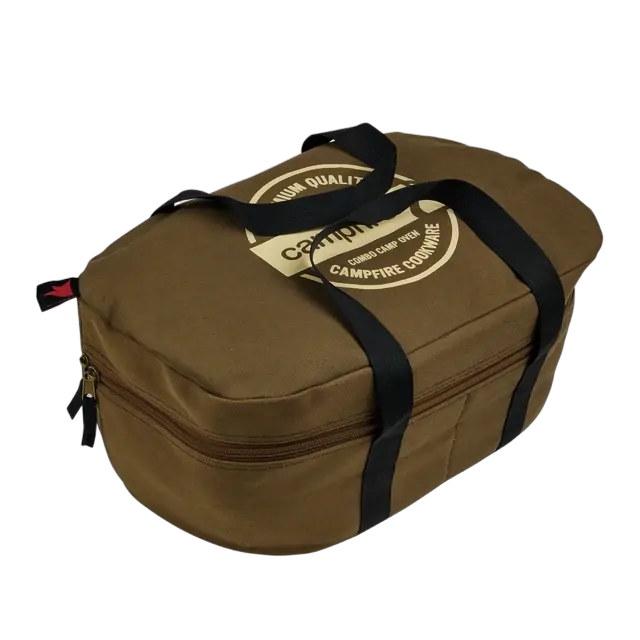 The Combo Camp Oven bag, offers a convenient and protective storage solution. Made from heavy-duty cotton canvas, this bag is built to last. It features reinforced webbed carry straps, allowing for easy transportation to your camping destination. The bag's solid built-in base provides stability and support, while the padded walls offer added protection for your camp oven during transport. With a heavy-duty and reliable zipper closure, your camp oven remains securely stored and protected from dust and damage.