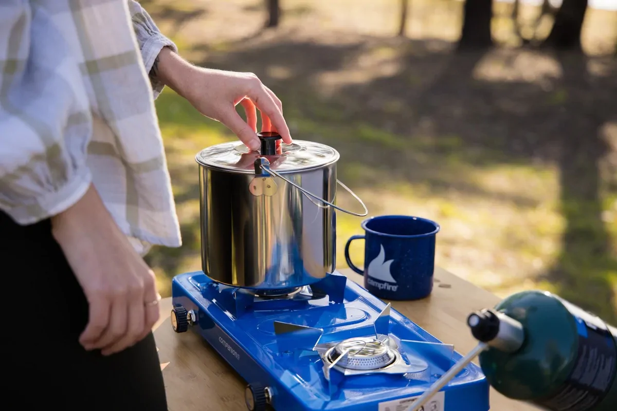 Generously sized with a 2.8 L capacity, this traditional stainless steel billy is a must have camping staple.