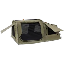 Like a traditional swag, a tent stretcher is a thin swag on a stretcher that comes built into the unit. This make getting off the ground and staying waterproof hassle free and convenient. Unlike a swag they are made from a thin polyester not a canvas material meaning that if you were to take it into a colder climate, it is recommended to use a sleeping bag that is rated to colder temperatures.