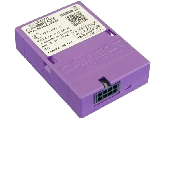 The CANM8 CANNECT PARK ONE is a CAN Bus interface that provides accurate control for after-market front parking sensors, side view systems and other equipment that requires a control signal within a specific speed range.