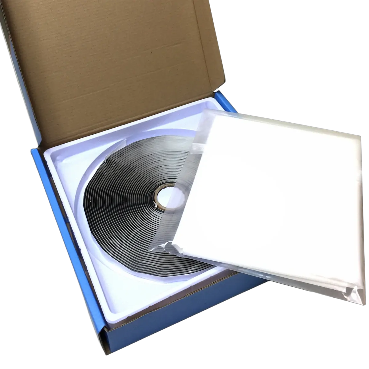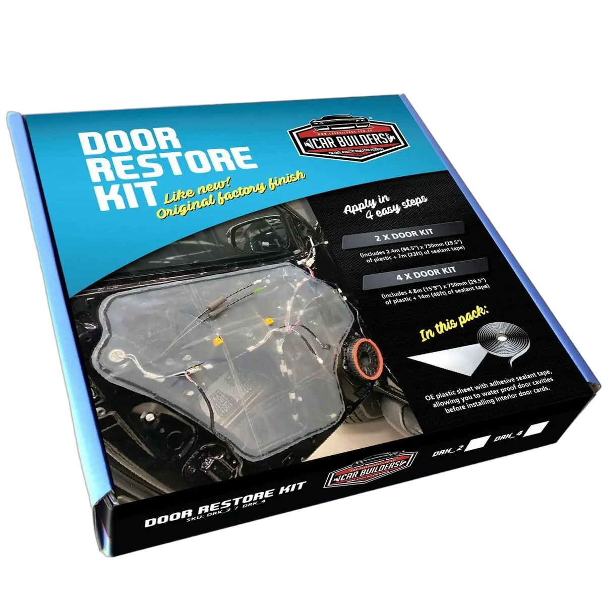 Our Door Restore Kit comes complete with OE plastic and adhesive sealant tape to water proof door cavities before interior trim is installed.