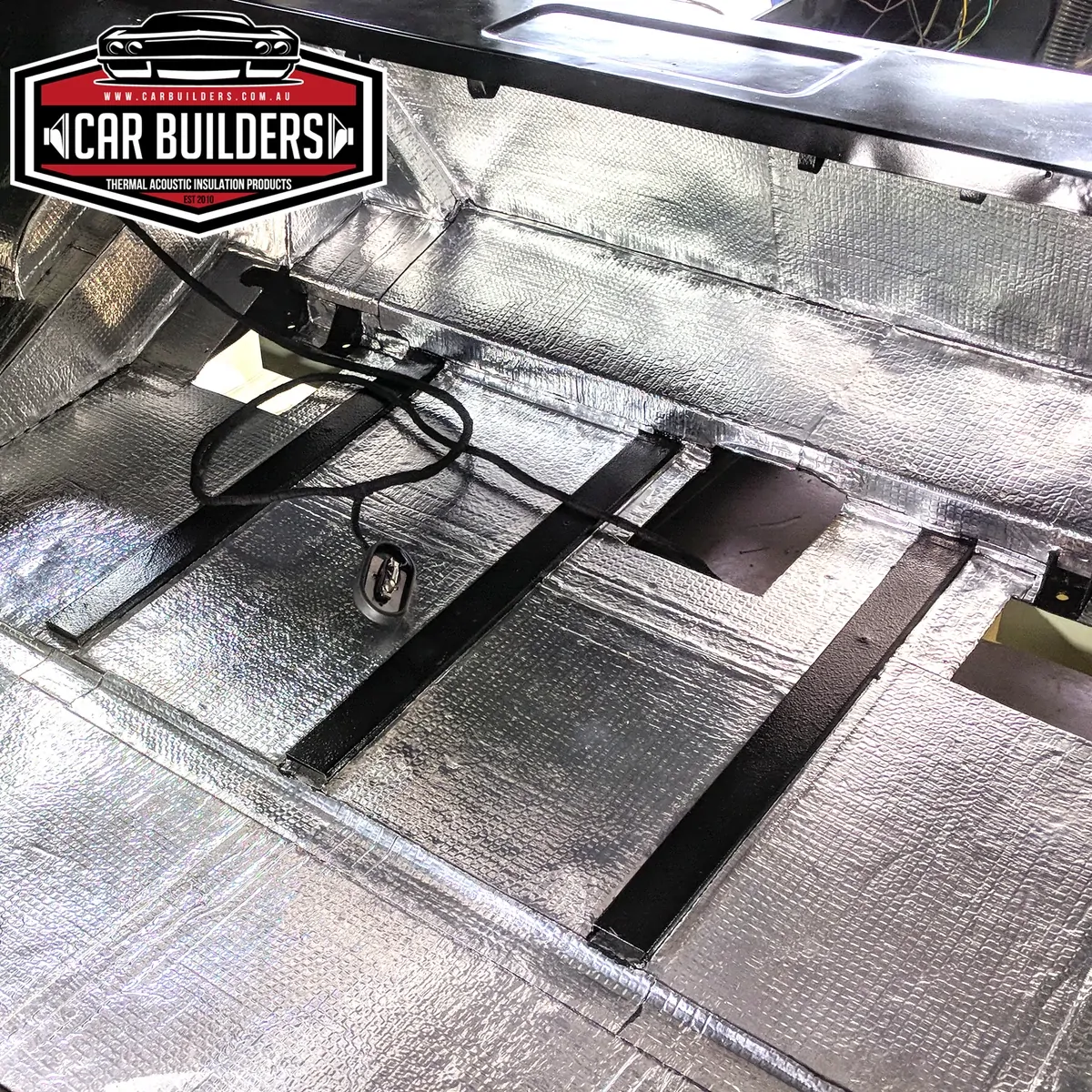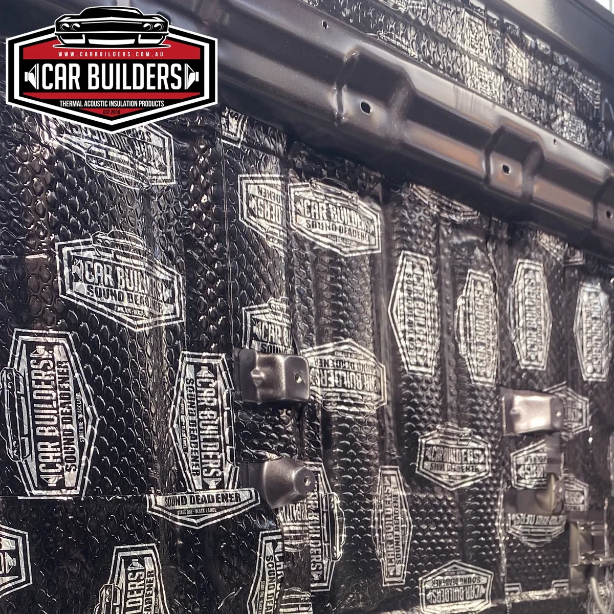 Car Builders Stage 1 Sound Deadener is a vibration (sound) dampening mat. It consists of a butyl rubber noise absorption layer combined with an aluminium top layer.