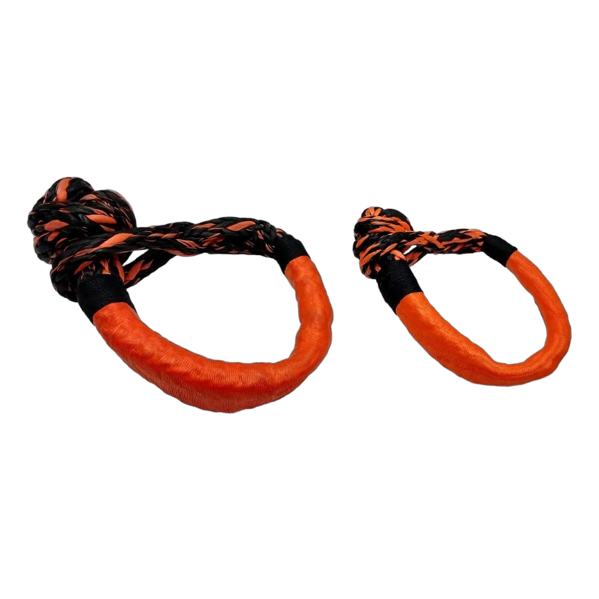 Carbon Offroad Mega Pro 40000kg Large Loop Soft Shackle. This shackle is designed for seriously heavy duty use. With testing done on some insanely large bull dozers and other heavy equipment we can clearly state these soft shackles are a serious bit of kit and totally suitable for heavy vehicle use. The shackle is 700mm long when opened, allowing a large relief when connecting to big ropes, straps and recovery points. The oversize knot as shown in the images will ensure that it will never release while under load.