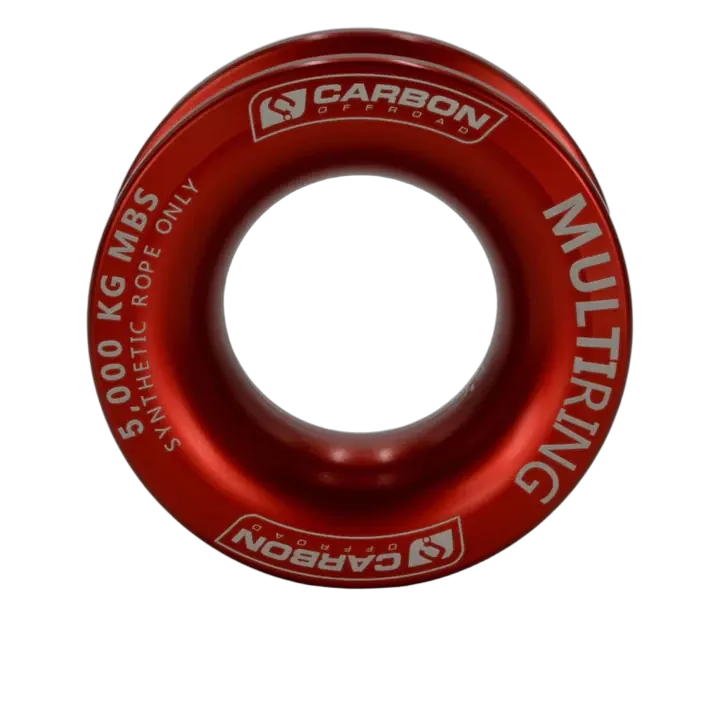 The Carbon Offroad Solid Recovery Ring brings a new dimension to the Carbon Offroad stable of lightweight and strong recovery items. This solid billet 6061 T6 Aluminium Recovery Ring which is designed to be used with the Carbon Offroad soft shackle will allow you to setup a double line pull with your synthetic rope electric winch. With lasered branding not embossed, CNCed or stamped branding affecting the operation of the ring against the soft shackle, and a low friction co-efficient anodised finish, this solid recovery ring will provide years of trouble-free double line pulls.