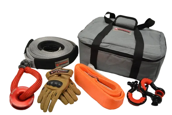 The Carbon Offroad Essential Snatch and Winch 4x4 Recovery Kit is designed for equipping the 4x4 operator with the necessary essential recovery products to safely perform two major tasks in safe vehicle recovery.