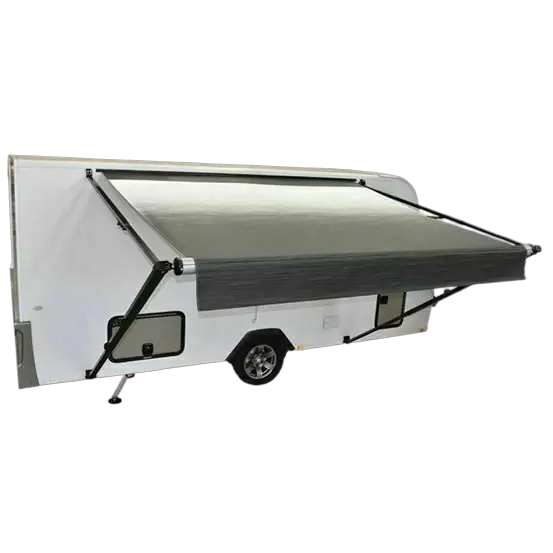 Carefree’s vinyl fabric features a superior construction with the top portion being called the Weatherguard – this protects the fabric from the sun, scrapes and exposure when the awning is rolled up. The Carefree Fiesta has long been a favourite amongst RVers, not only in the USA but here in Australia as well. It is a simple to use manual, spring loaded, rollout awning featuring a vinyl weatherguard as previously mentioned. Sizes vary - the 11’ – 14’ awnings project up to 7’3” (2.21m), while the awnings from 15’ – 20’ project up to 7' 6 ¾" (2.30m).