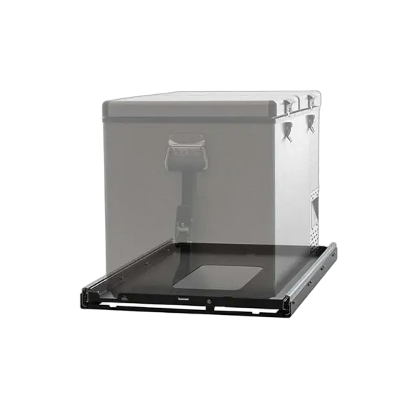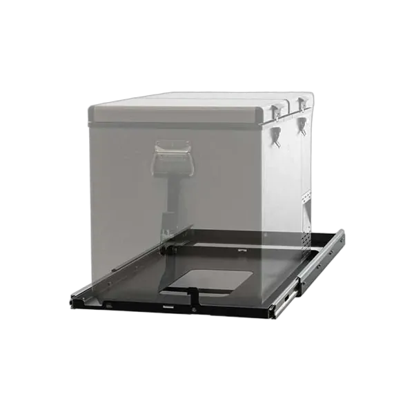 This slide out tray offers easy access to a fridge (80L to 90L) and/or other stored gear with a low profile, rigid design. This slide system makes accessing your fridge or other heavy gear quick and simple whilst using minimal space.