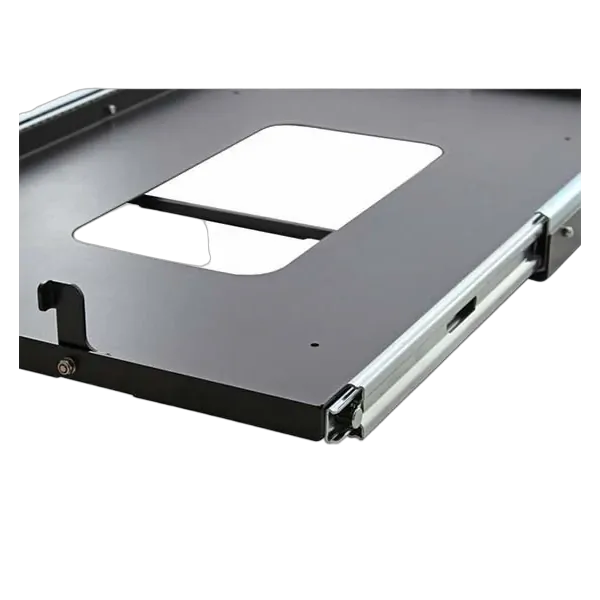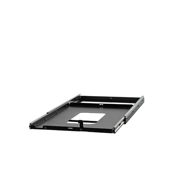 High strength bearing drawer slides allows the tray to extend nearly 100% from the anchored base.