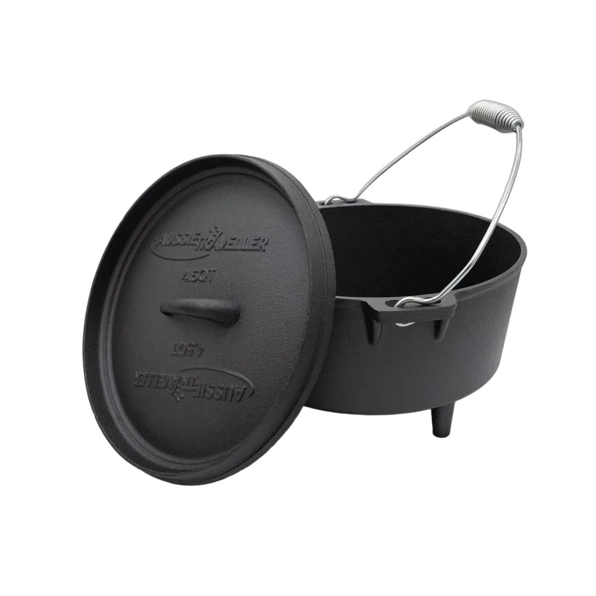 The Aussie Traveller Cast Iron cookware range is essential for cooking up a storm on the campfire. Cast Iron is a delight to cook with due to its superior heat retention and durability - better than steel or aluminium. This heavy-duty and practical cookware is made for cooking on coals, as it distributes heat evenly and maintains the heat, so you can get the best sear and perfect cook on any meats. For your benefit all our Cast Iron cookware also comes pre-seasoned, making it completely non-stick.