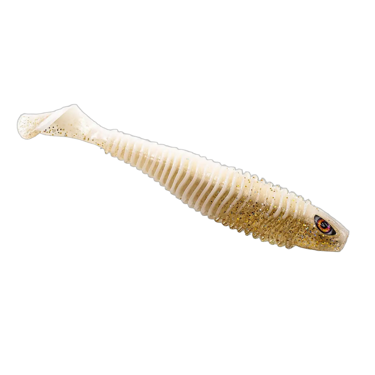 FEATURES: Realistic Ribbed Body, Super Realistic Eyes, Thumping Paddle Tail, Internal and Externally added Salt and Shrimp Scent.