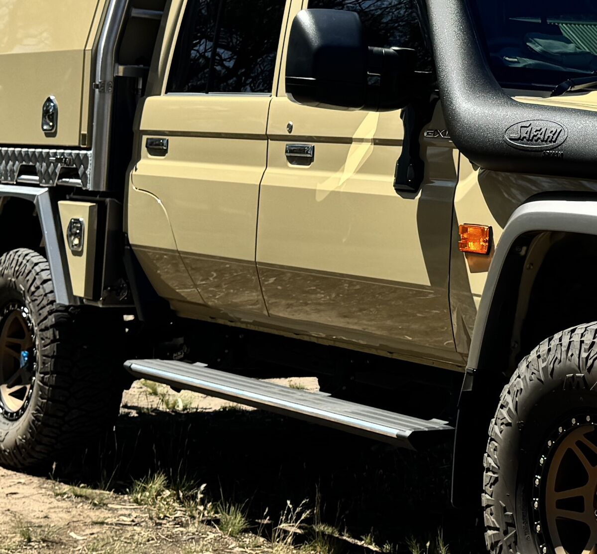 The Power Boards are activated by the vehicle’s door sensor, and the magic begins when the doors open. The Steps lower to a comfortable height. Once the doors are closed, the Power Boards retract. The Power Boards are neatly installed under your vehicle, running between the wheel arches on both the driver and passenger side. There is no drilling required, and the motors have a 300kg load capacity, a safety cut off feature, and an IP68 rating on the motors.