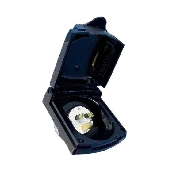 Clipsal (new) black external 15amp power inlet - A flush inlet with weatherproof flap.