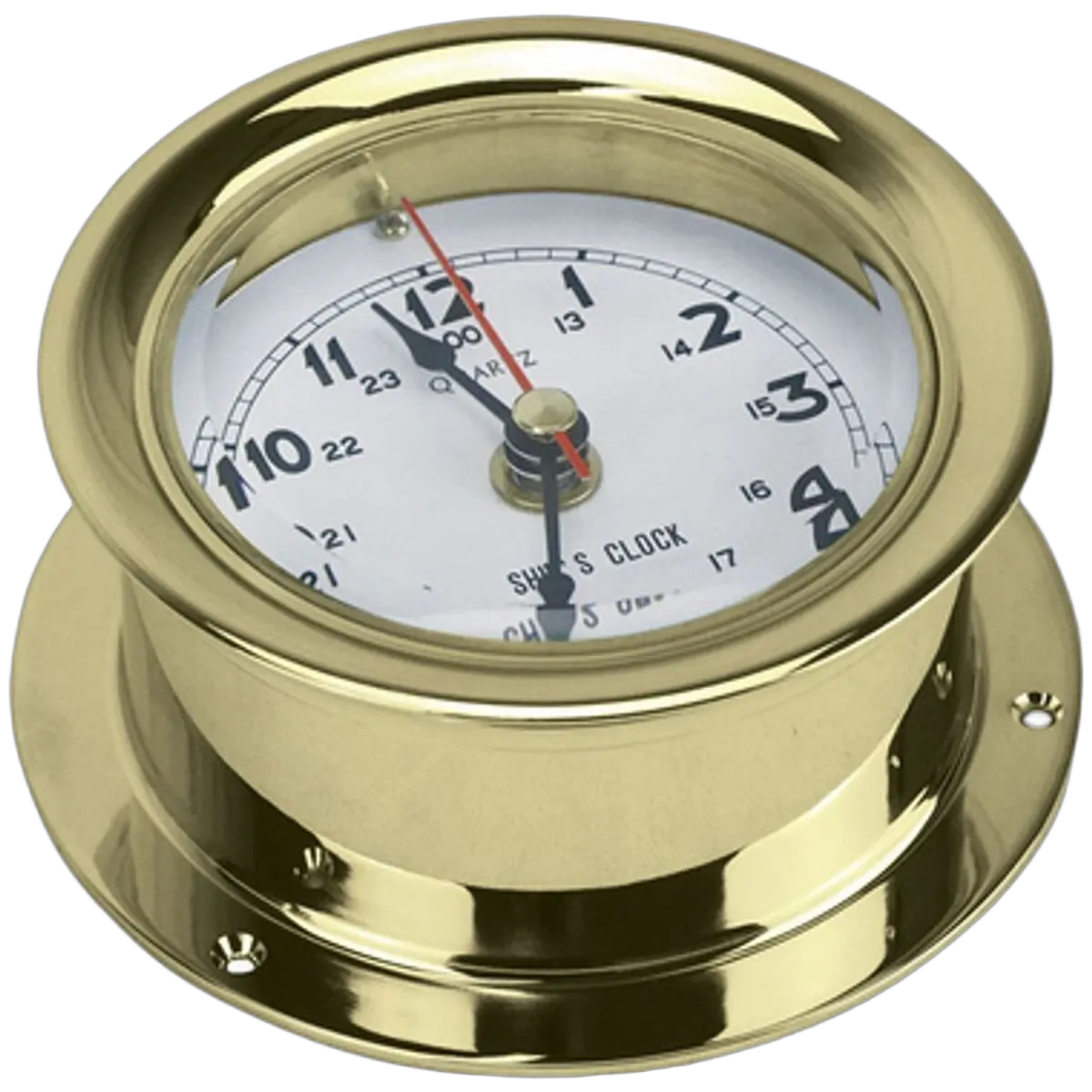 Clock Polished Brass 110mm Diam White Face 152mm Diam Base