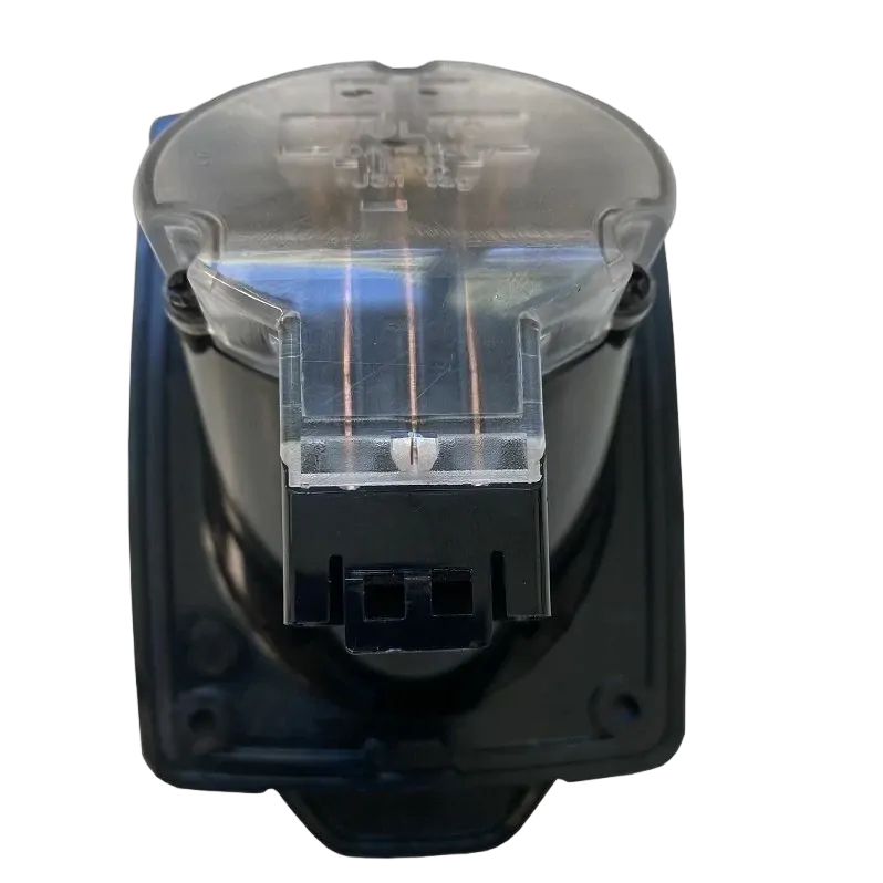 To get power into your van you need a 15-amp inlet and if you’re looking at a CMS system or replacing one then this is what you need as it starts from here. The CMS 15-amp power inlet features all the usual appointments of a regular 15-amp inlet such as a spring-loaded weather flap, IP44 rating, large earth pin and common sized four screw mount-frame but on rear it features the classic CMS plug in socket with safety clip for a quick, simple & dependable connection that your electrician will love.