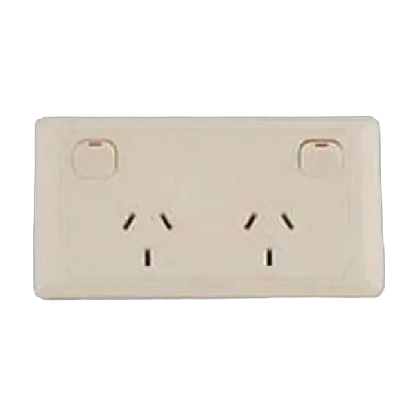 Double 10AMP GPO with 20AMP installation couplers, double pole switched.